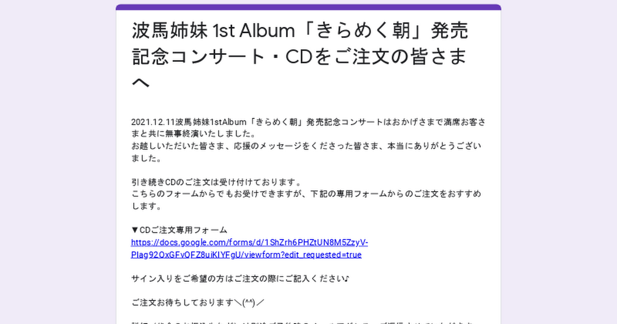 特段に「波馬姉妹」としてのWEBサイトなどはありませんので、コンサート情報などはSNSなどをフォローしてみてください。
