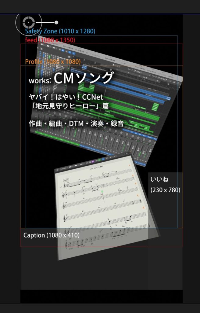 プロフィール表示エリア(黄)とセーフティゾーン(水色)はキャプションボックスの上端に配置しました。