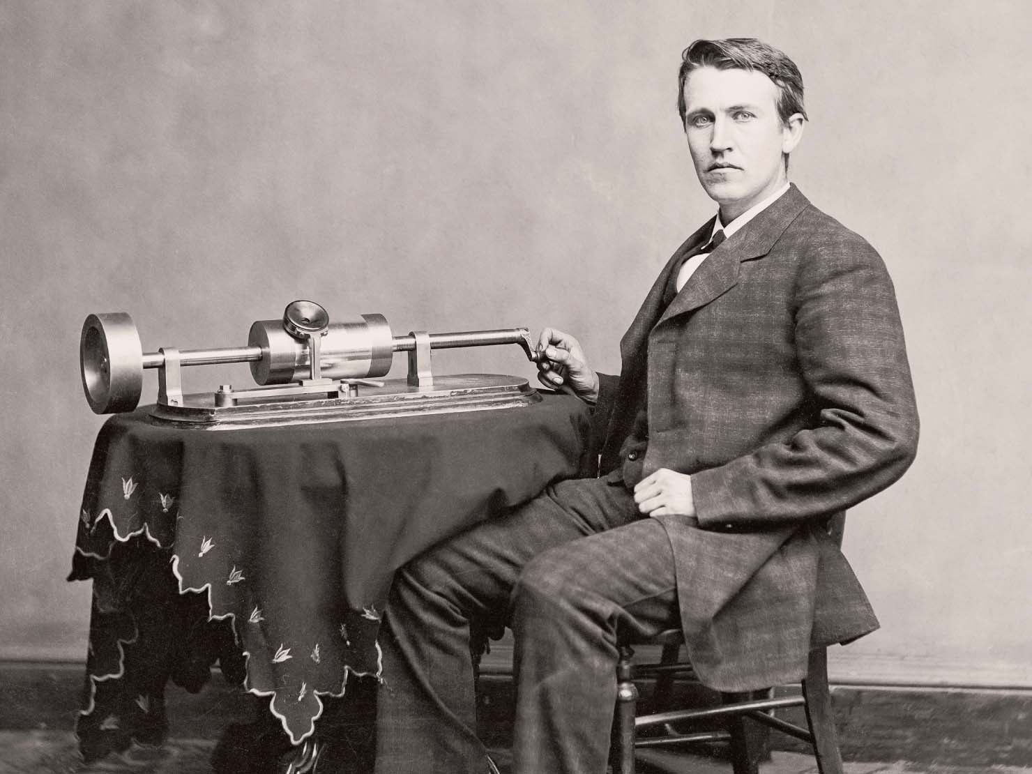 録音メディアの最初としては1877年のアメリカ人・トーマス・エジソンによる錫箔円筒蓄音機の公開実験が良く語られます。